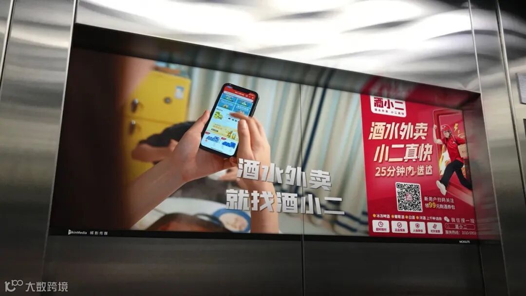 所以经常“露脸”变得十分重要,就像“酒小二”在梯影大屏上的广告语“25分钟内送达”,强化了“酒水外卖,小二真快”的品牌特色。“酒小二”的配送小哥就像化身现代的小二,借助梯影大屏的高频曝光,在消费者心中形成强烈记忆。