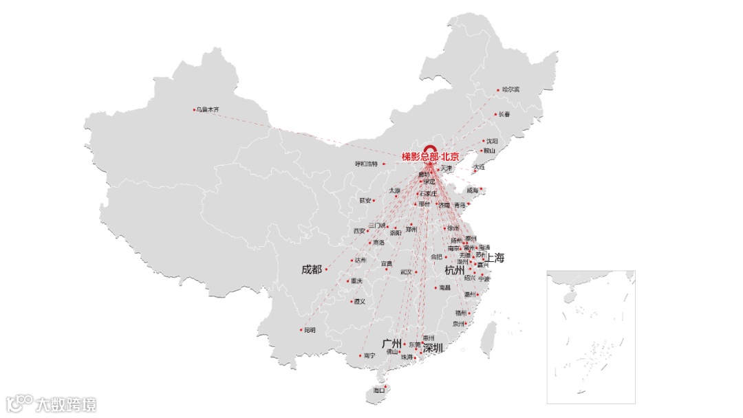 梯影传媒是电梯投影媒体缔造者,中国第二大电梯媒体公司。聚焦高端商务楼宇的数字化线下媒体平台,公司以前瞻技术扼守核心传播场景打造楼宇媒体新蓝海,现已覆盖全球60余座城市、近10万部写字楼电梯,日均影响近亿商务白领。
