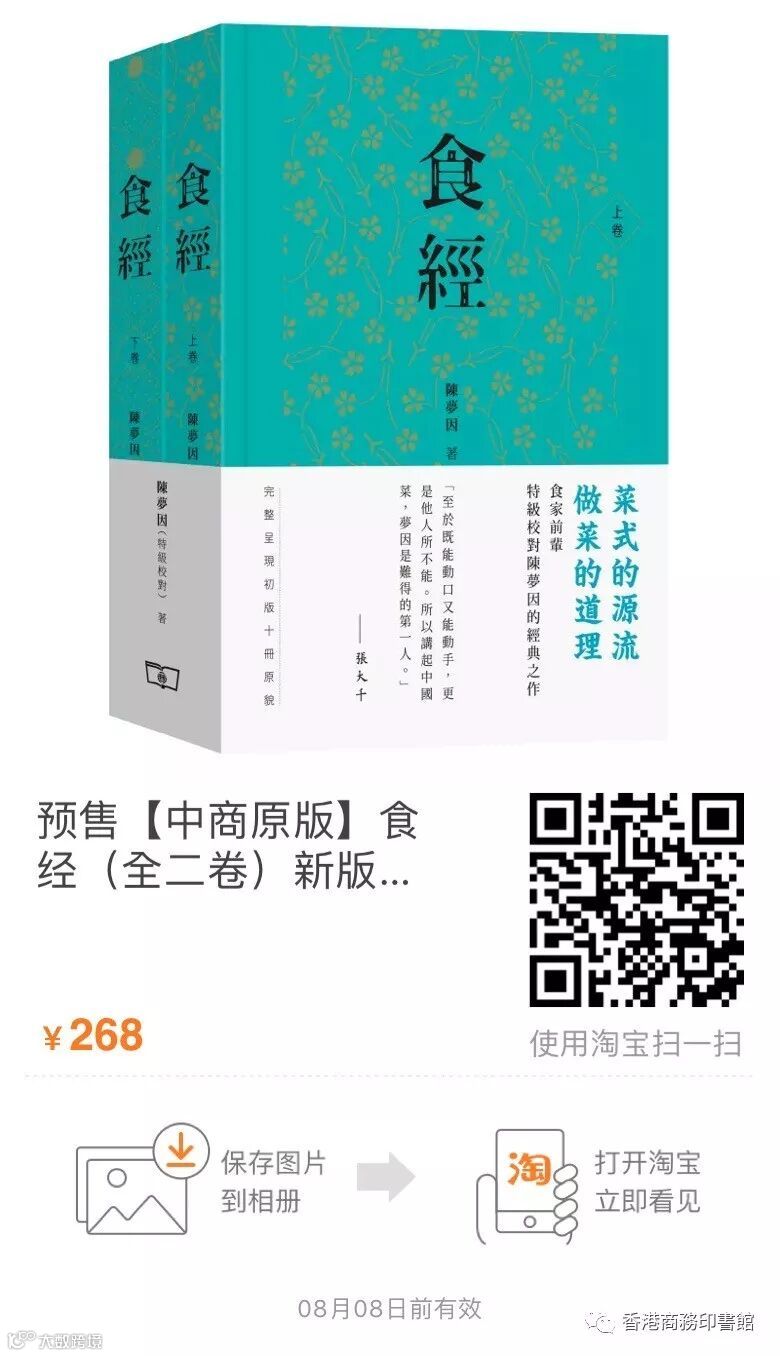 陳夢因先生的《食經》是上世紀五十年代的文章結集,他當時擔任《星島日報》總編輯,並以「特級校對」的名字在報章撰寫飲食文章,不但開創了食經專欄的先河,後來文章結集成書,更是一紙風行。《食經》斷版多年,一直也收到不少讀者查詢有關再版之事,今年商務得到陳夢因先生的子媳陳紀臨先生和方曉嵐女士幫忙,重新整理文章,使經典得以再現。