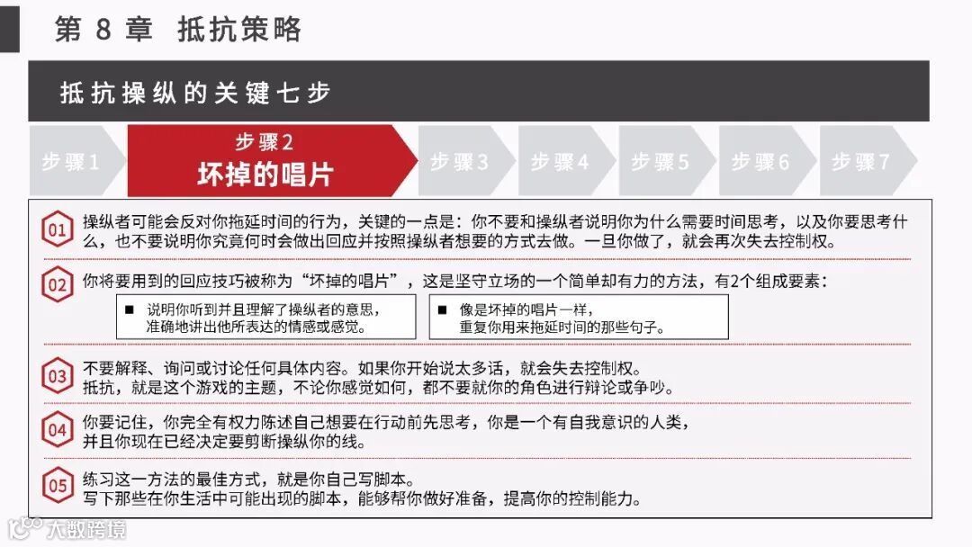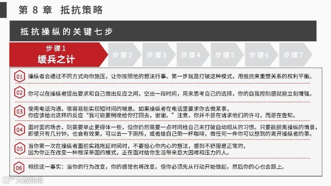 长期心理韧性:通过实践逐步摆脱习惯性顺从,最终实现“当你不配合,操纵便失效”的自由状态。