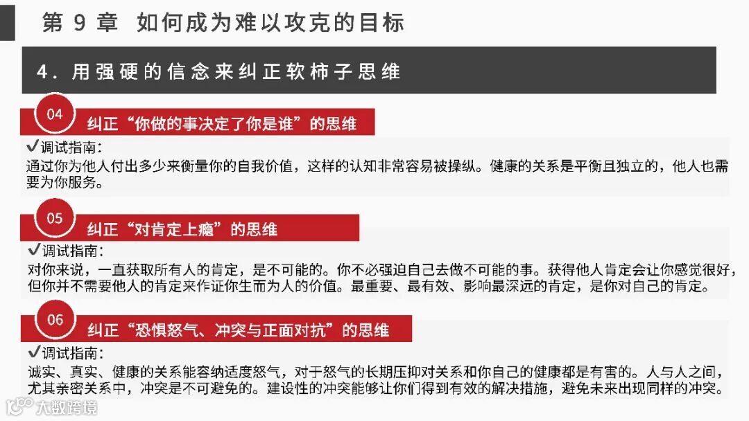 钝化情绪敏感度:通过脱敏训练适应焦虑、内疚等情绪,减少被操控的可能。