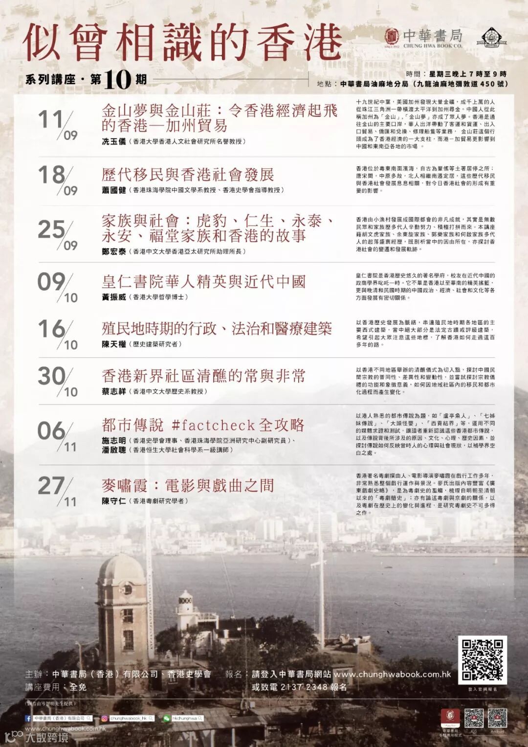 香港中華書局自創局以來,一直對啟蒙歷史觀和擴闊歷史知識,念茲在茲。近年與香港史學會成為合作伙伴,合作出版多本本地歷史學術著作,並自2013年開始在中華書局油麻地人文社科專門店舉行「似曾相識的香港」系列講座,迄今為止已是第十期。
