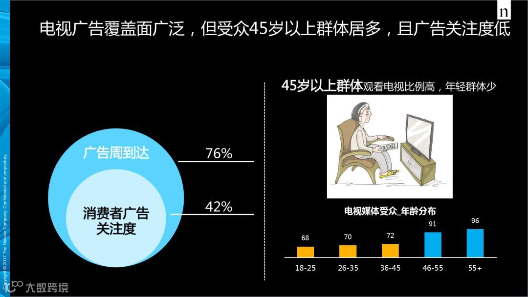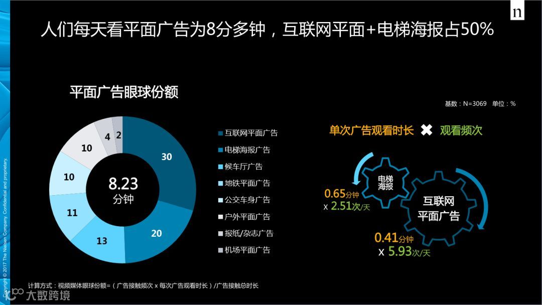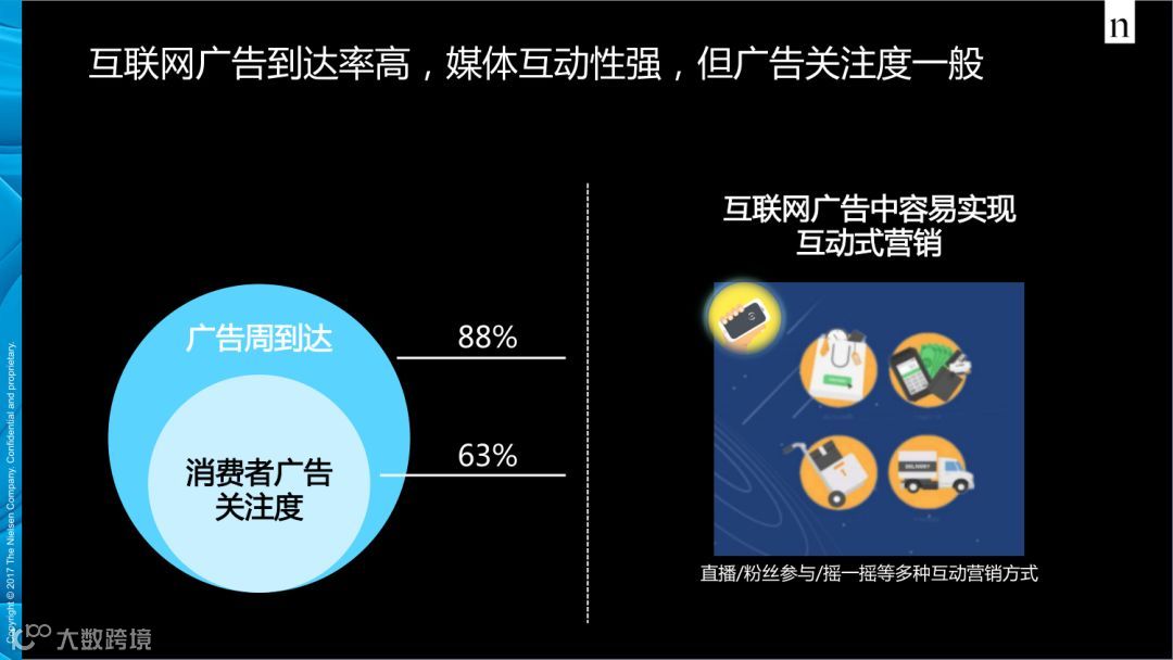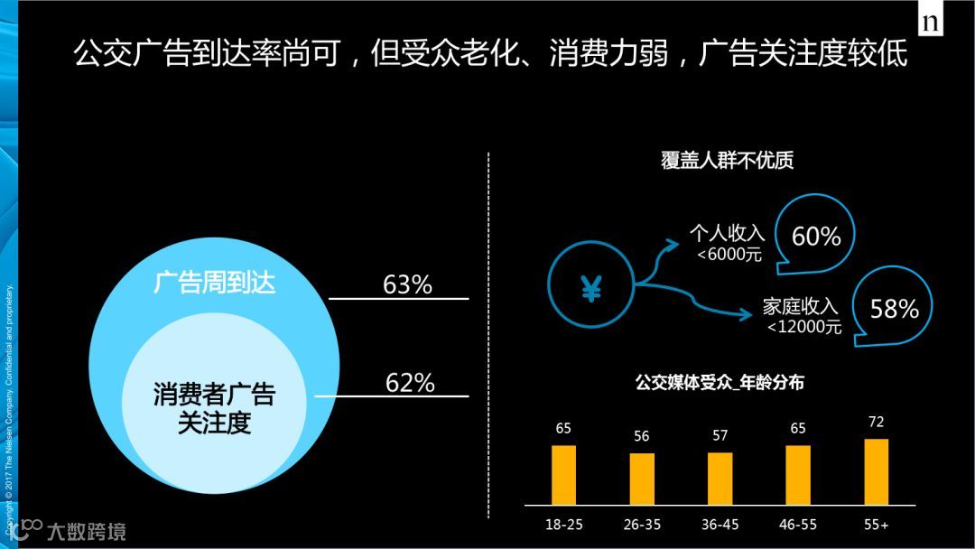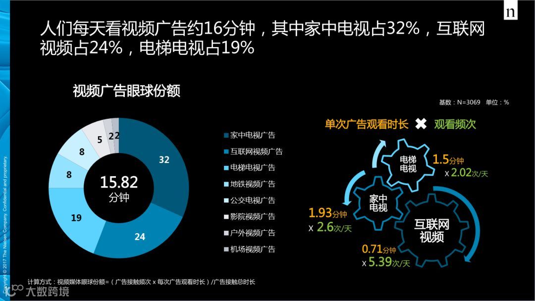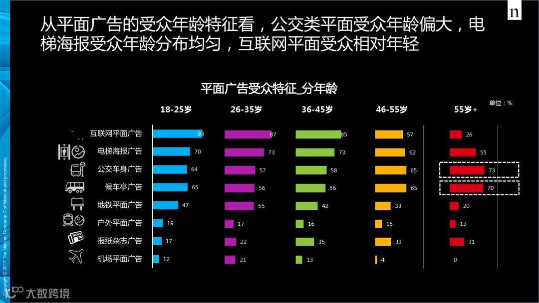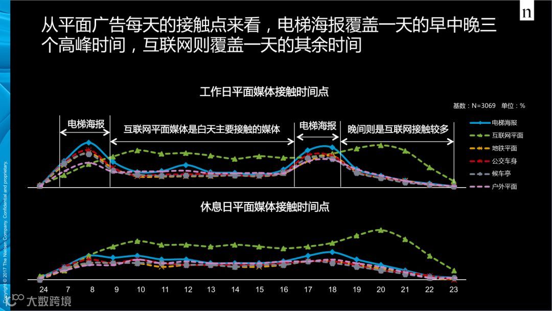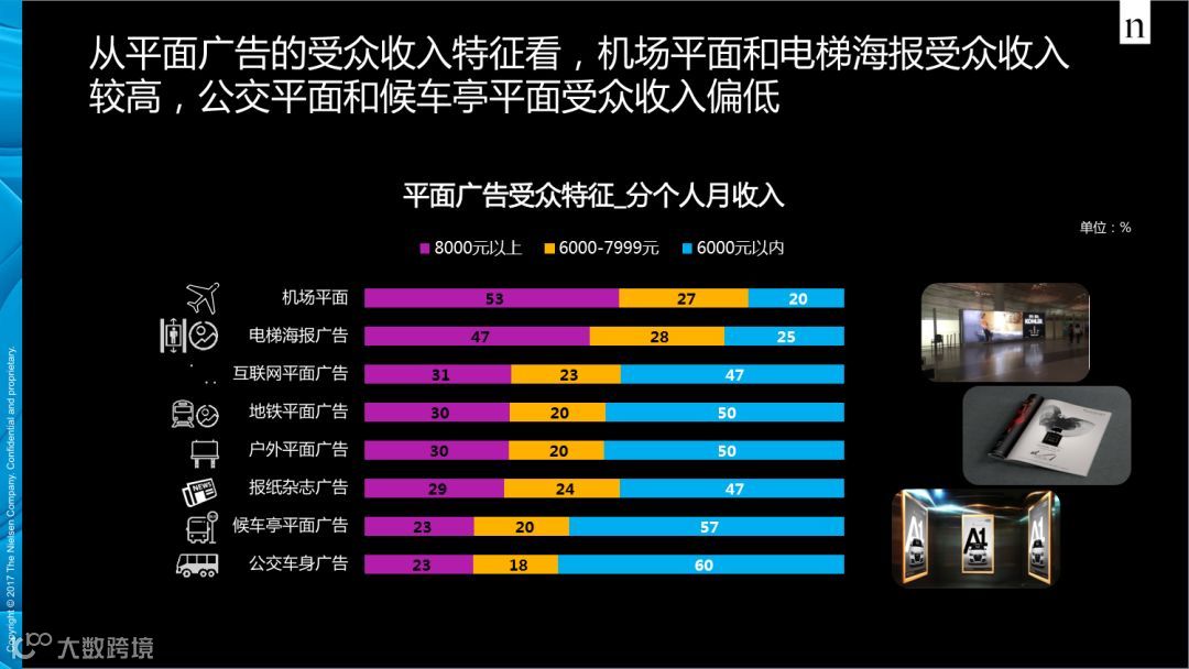 全球最大的研究公司尼尔森日前发布了《中国广告关注度研究》报告,其中互联网广告、电视广告、电梯广告成为中国三大广告平台,其受众偏重也相对不同。其中,电梯广告的受众质量高,且广告到达率达到了74%,并且电梯媒体在封闭空间中广告干扰度较低,广告关注度居于领先位置高达83% ,在全媒体和视频广告眼球份额也占据了19%。