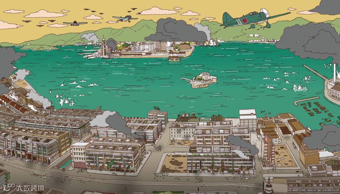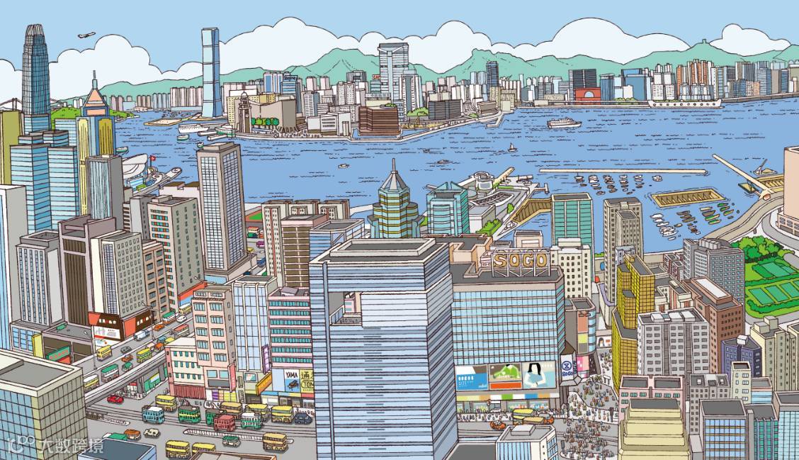 ■ 劉斯傑以同一視角繪畫不同年代的維港兩岸景色,反映香港的發展。