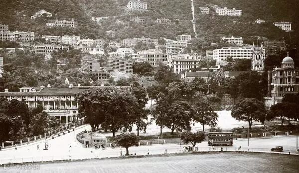 約 1930 年,由木球會(現遮打花園)望花園道及半山區,現為長江中心。