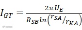 式中,RSB为p2基区的薄层电阻,由n2阴极区下方p2基区的电阻率ρPB与其厚度WP2的比值决定;wKG为门极至第一个阴极短路点的阴极区总宽度。