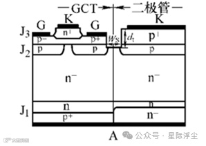 RC-GCT是将AS-GCT与二极管反并联在一起,门-阴极图形有两种布局:一是AS-GCT在芯片中央,二极管在外围,采用这种布局可简化其结终端工艺;另一种是二极管在芯片中央,AS-GCT在外围,采用这种布局可使芯片均匀地承受机械应力,并增大GCT的门极尺寸,有利于器件更均匀地开关。