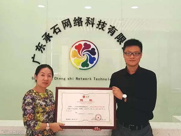 图为北京鸿蒙公司CEO为广东承石公司董事长揭牌授牌