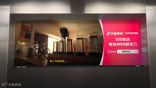 别发愁了,答案就在梯影大屏!近日,专业便携剃须刀品牌「yoose有色」正式亮相全国多个城市梯影大屏,在“520”到来前夕,将在全国各大中高端商务楼宇中持续不断地彰显有色MINI剃须刀的潮流本质,为职场人解锁情人节送礼的新招式!