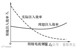 图7 阳极注入效率与电流密度的关系