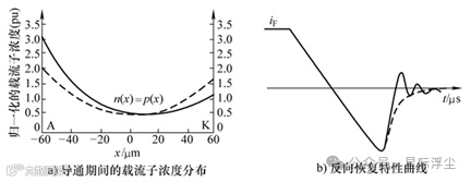 图5 功率二极管中的载流子分布及其对应的反向恢复特性曲线