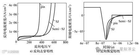 图10 超结、半超结与pin二极管的特性比较
