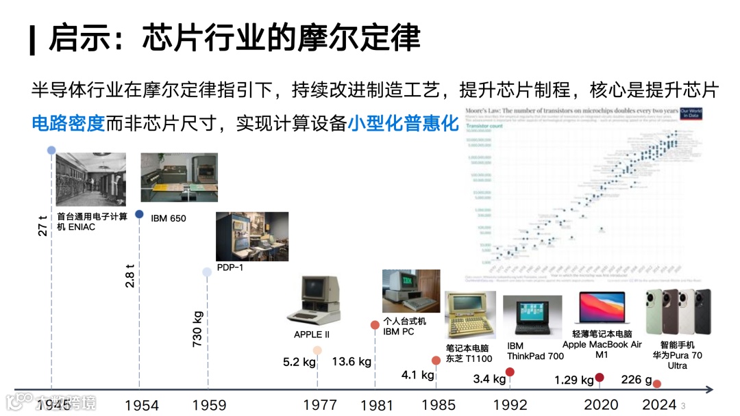 所有这一切,其实都源于芯片行业在摩尔定律的指引下,不断推进芯片制程,提升芯片电路密度,从而实现计算设备的小型化和普惠化,推动算力的普及。这显然是我们未来追求高效性的一个非常重要的内在需求。
