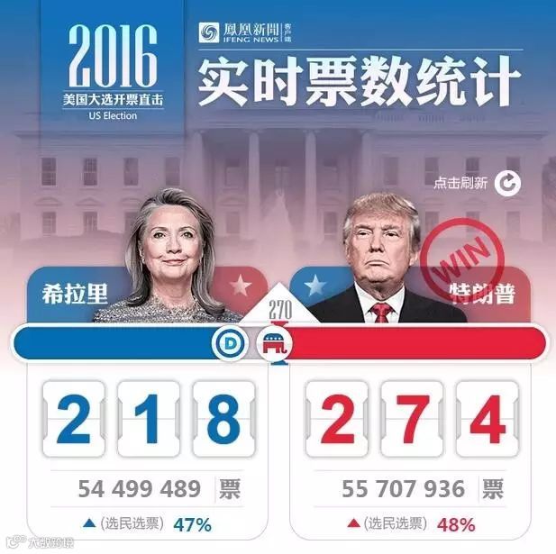 2016年第二个黑天鹅诞生了,美国共和党总统候选人唐纳德·特朗普目前赢得足够的选举人票(270票),将成为新一届美国总统。他是一位毫无从政经验的地产商,此前在民调中一直落后希拉里,如今竟然击败希拉里,笑到了最后,成美国第45任总统!!!这次美国大选的是一个标志性事件,我们的世界将经历历史性的改变。