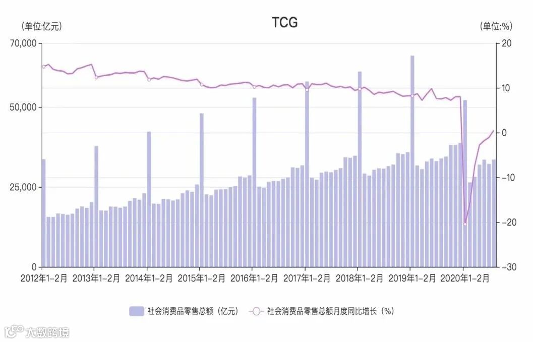 疫情期间,平均有30%以上的消费者推迟了对耐消品的购买计划。所幸在2020年4⽉,汽⻋、通信等前期需求受抑制的升级型耐⽤消费品销售额明显回升,同⽐分别持平、增⻓12.2%,⽐上⽉分别回升18.1%和5.7%。家电类、家具类商品销售额⽐上⽉分别回升21.2%、17.3%。到了2020年8⽉,中国社会消费品零售总额增速全年⾸次由负转正。