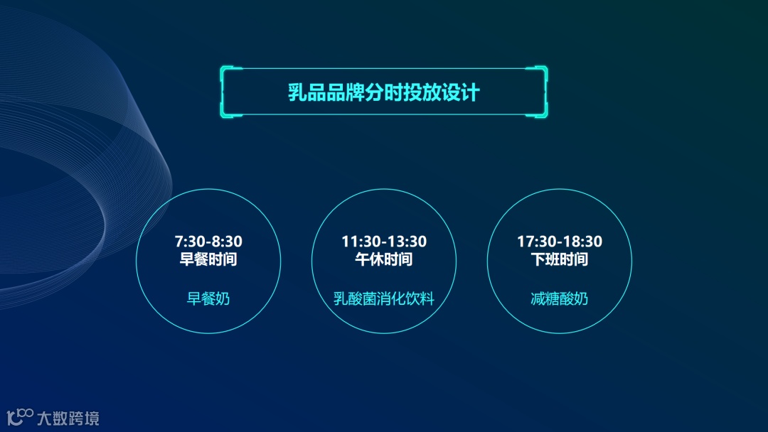 演讲过程中,乔丽抛出这样一个问题:如何让受众在不同时段看到合适的信息?随后讲解了乳品品牌分时投放设计,即在早餐时段推送早餐奶,午休时推送乳酸菌消化饮料,而下班时间则推荐减糖酸奶。真正在时间维度和受众需求进行强关联——所见即所需。