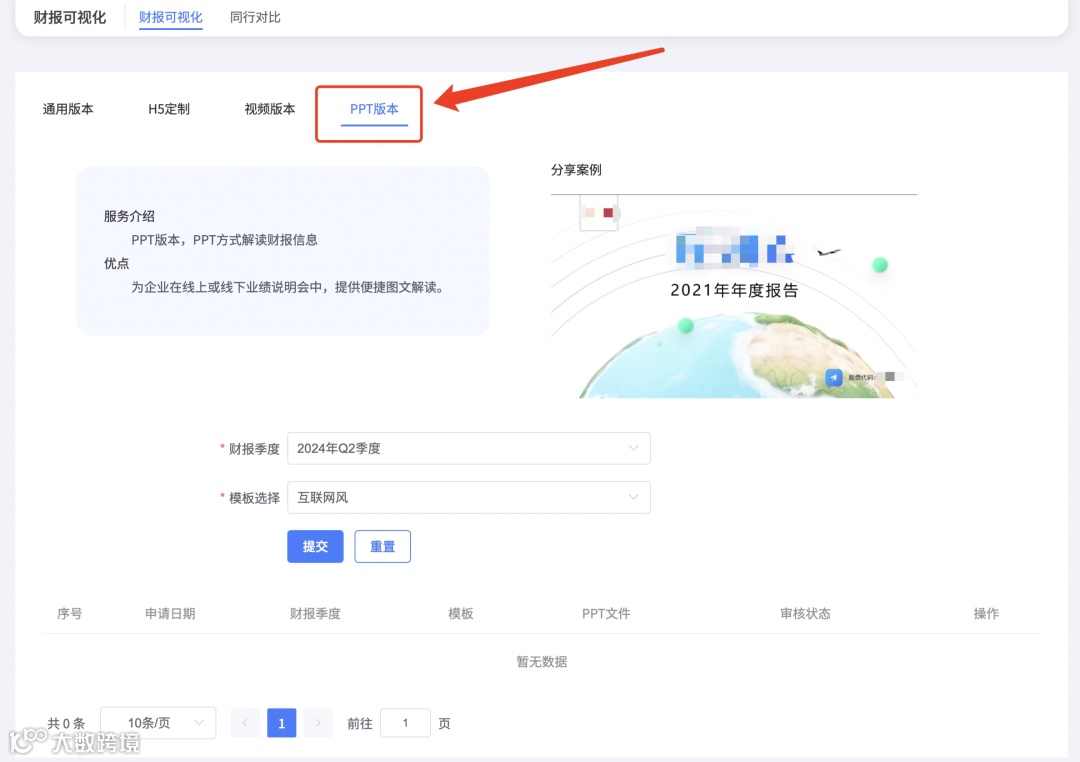 做PPT做到头大?全景服务平台可视化财报可帮您一键生成财报PPT,数据报表一键生成可视化图形,助您事半功倍!