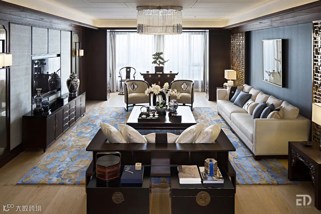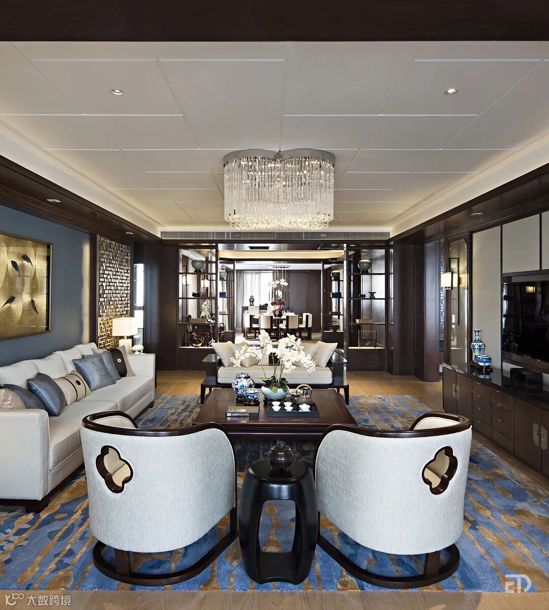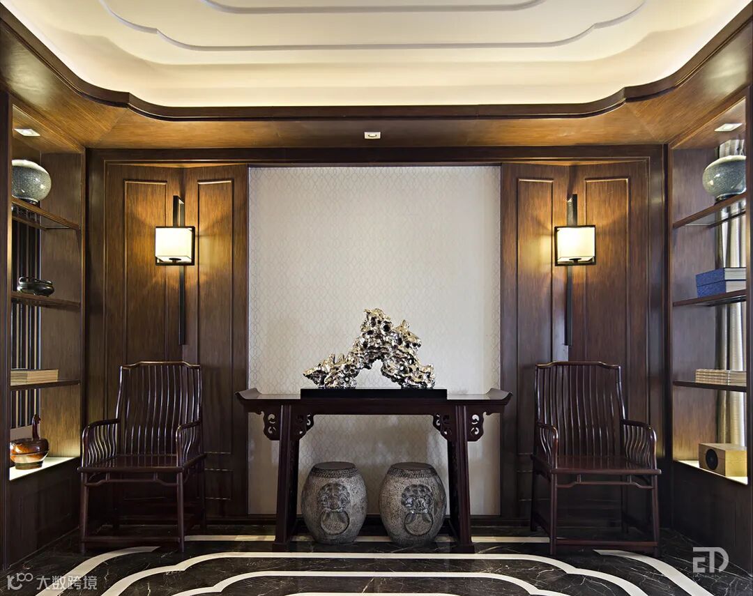 设计师在设计风格定位时采用现代中式奢华风格,通过合理的空间规划,材质与色彩的精心拿捏,营造出一处富有尊贵感和人文特色的中国式家居空间。
