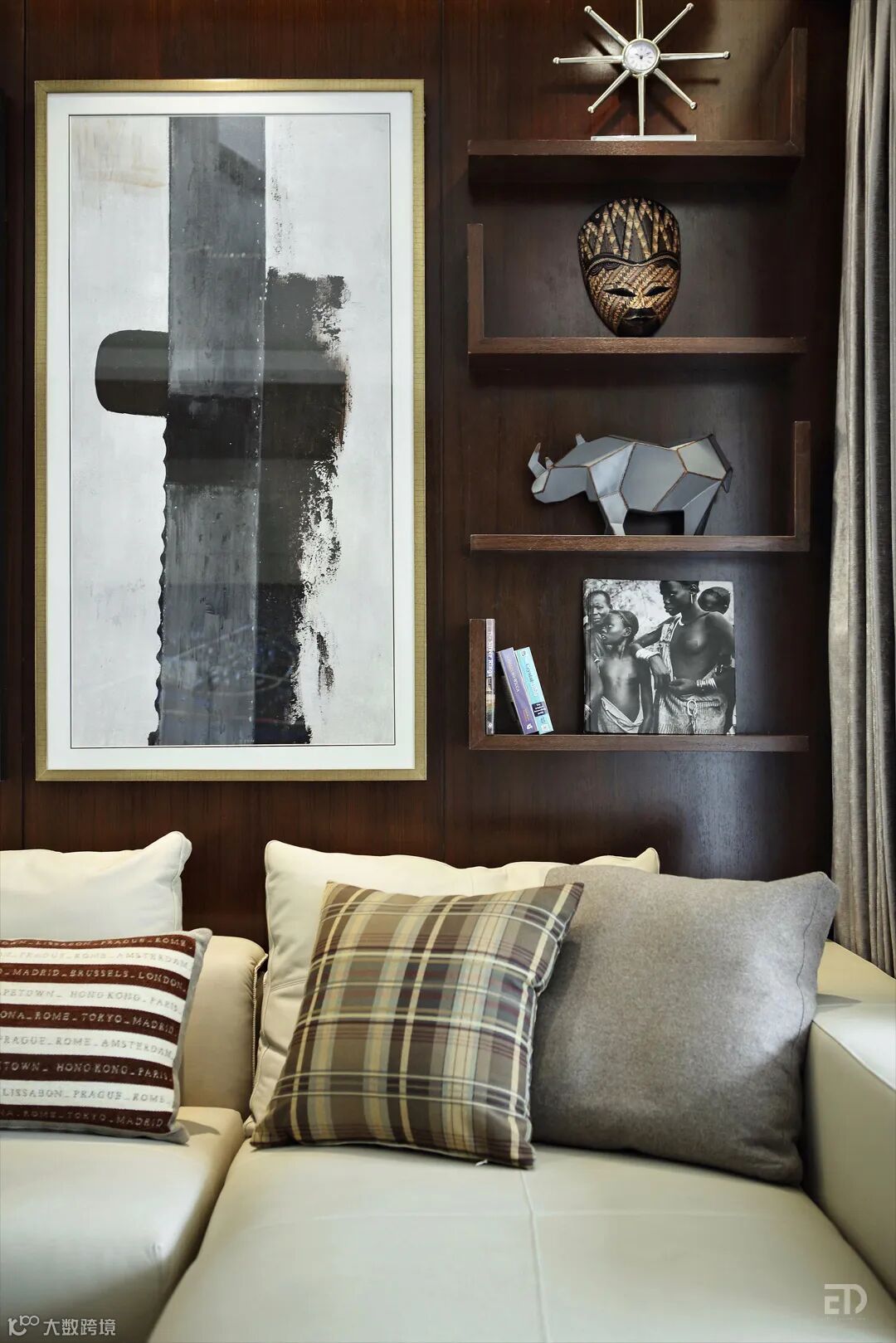 戴勇设计团队在简约的设计中融入自然和异域元素,营造出主人热爱生活,喜欢旅游和阅读的生活场景。室内设计雅致沉稳,呈现家居的温馨感、舒适性和历史印迹。