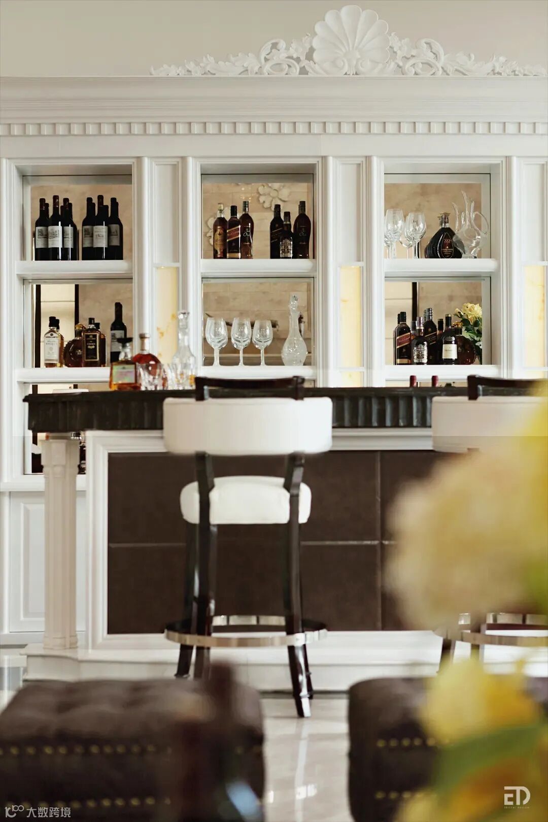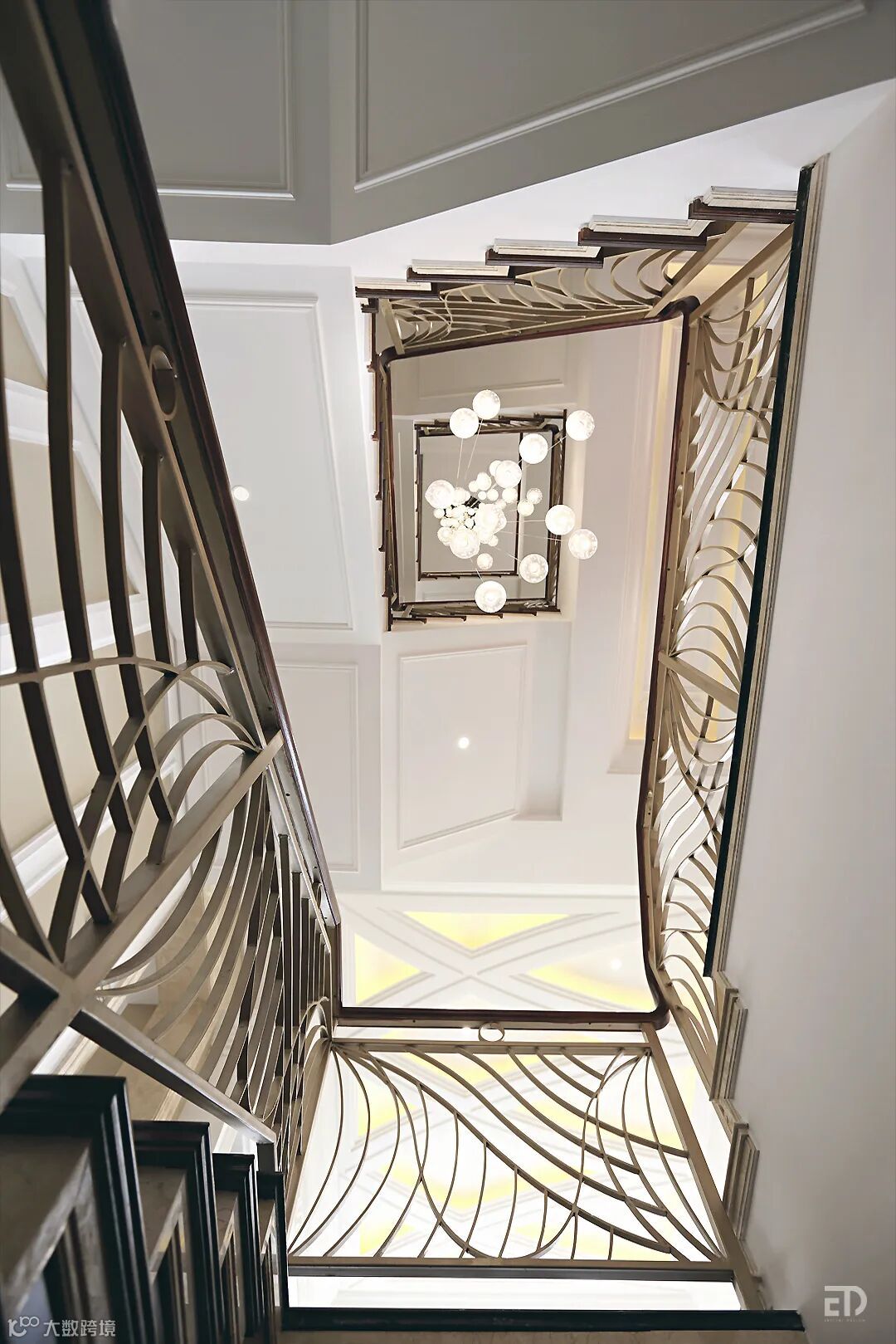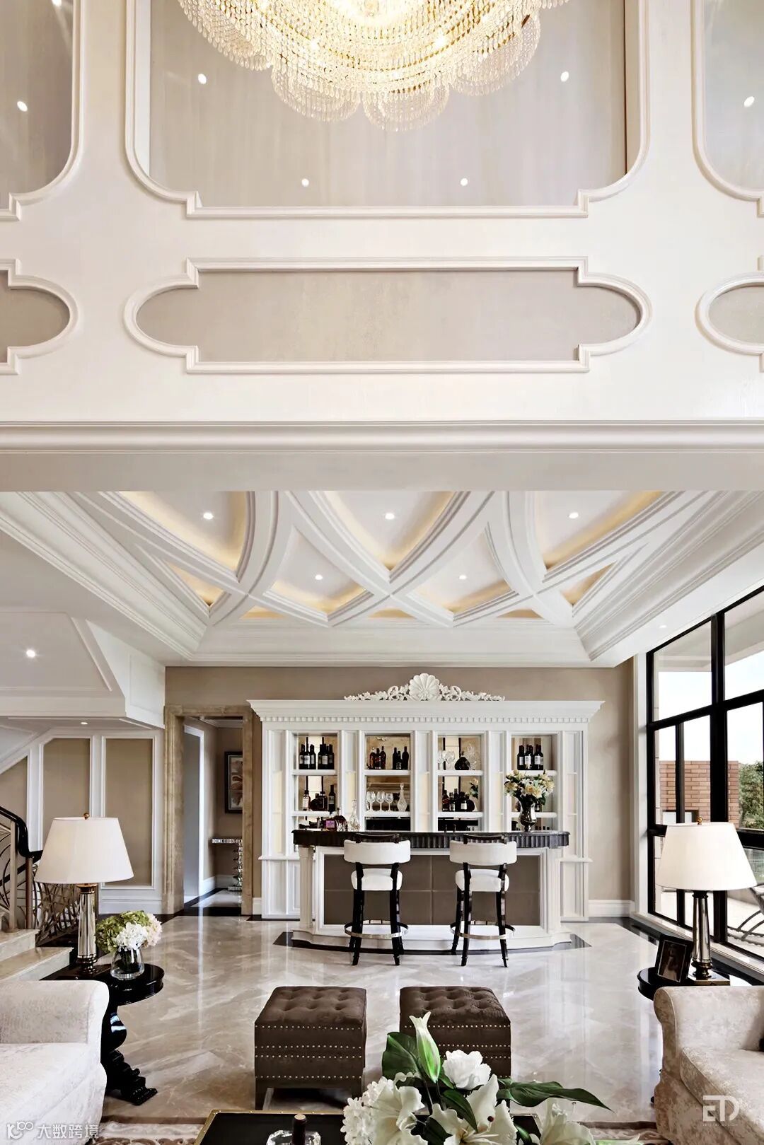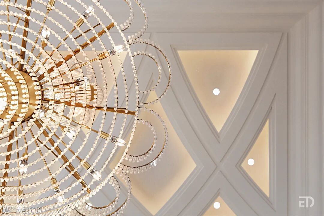戴勇设计团队以现代法式风格为主导,在整体布局上突出轴线的对称,让空间看起来气势恢宏,庄重典雅。空间设计追求流畅感,家具造型上则强调轻重均衡,以此烘托空间的奢华感与雅致感。丰富的曲线串联起一个个艺术的元素,细节上的精雕细琢,让空间充满着优雅气息。