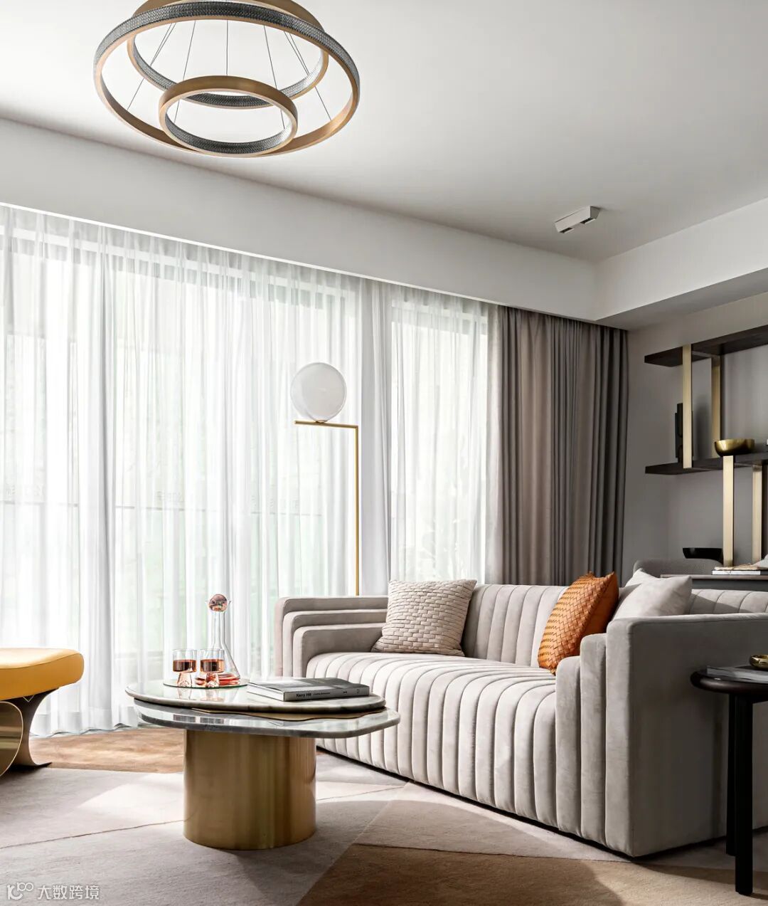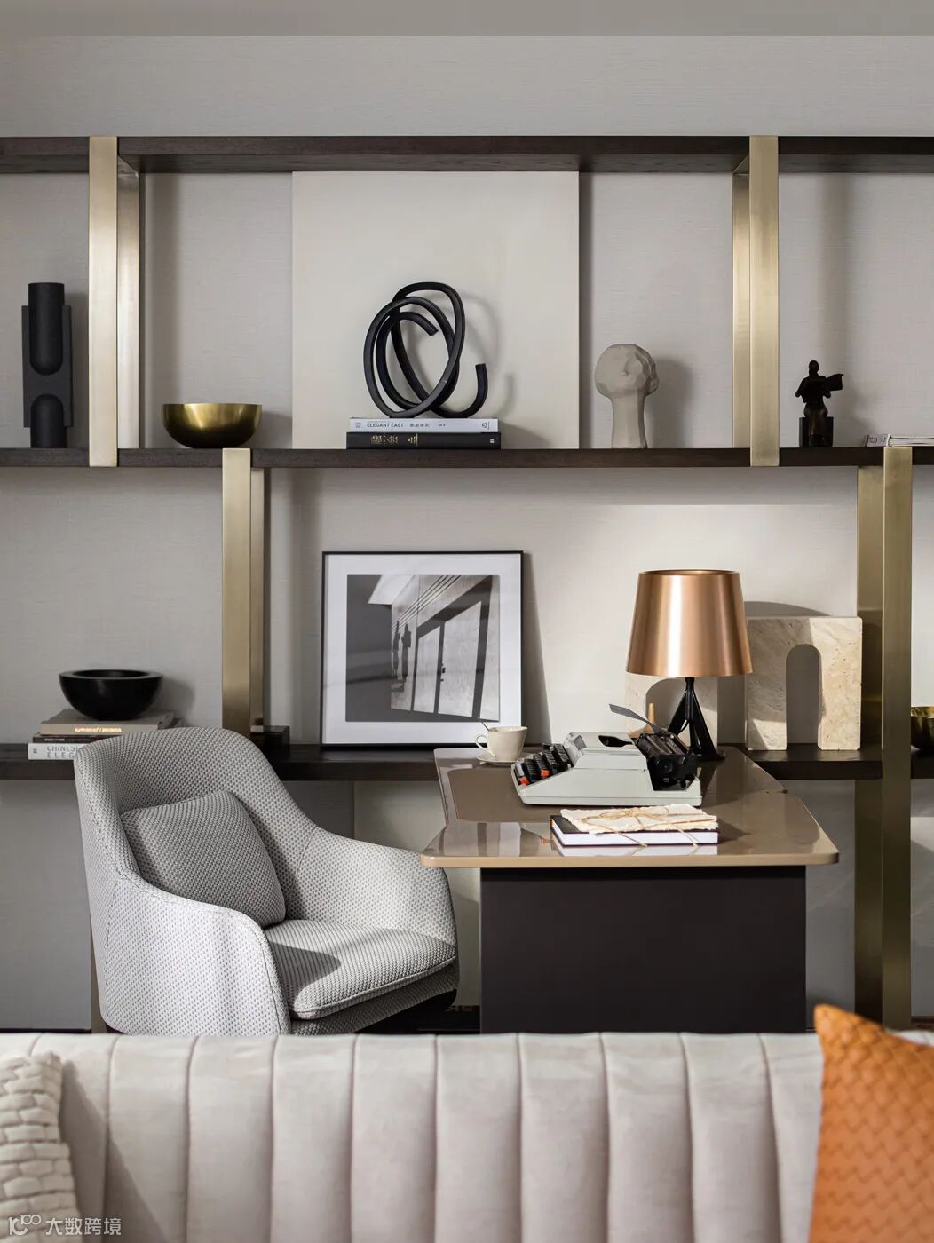 客厅最显著的特点是开放式书房的融入。在我们常规的认知里,书房往往是一个独立的空间。而开放式的书房则打破了这种常规,使书房与客厅合二为一。书房的边界得到弱化,不再局限于狭小的空间当中,整个客厅也被浓郁的书香气息所填满。