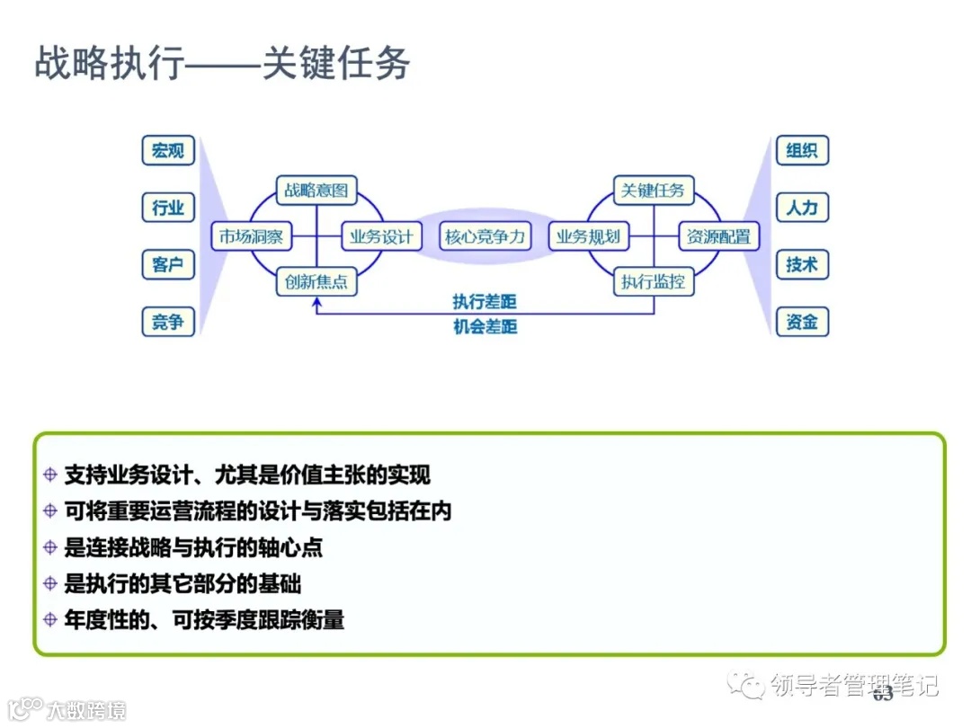 ►领导者说:★BLM模型是源自IBM2003年研发的一套完整的战略规划方法论,通常我们把它翻译为“业务领先模型”。BLM共分为四个部分,最顶层是领导力,意味着领导力是公司整体发展的主要驱动力;最底层是价值观,意味着价值观对组织文化的深层影响;当然居中的战略与执行就是决定企业前进的根本动力。华为自2005年引入BLM模型后,有效的解决了各部门战略落地问题并极大的提升了人力资源部门与业务部门的联系紧密程度。。