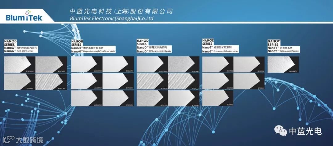 NanoG™ -防眩光,NanoH™-高扩散,NanoE™-经济,NanoD™-光束角、NanoY™-消黄斑