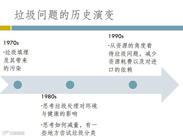 从专家委员会发表的一些报告中也可以看出这个历程的发展,1974年专家委员会出版《垃圾与人的健康》,认识到填埋、焚烧只是转移问题而已,即使焚烧最终还是需要填埋(焚烧的飞灰量就占总垃圾量的5%-20%),污染仍会存在。1990年出版了厚厚一本的《垃圾经济评估专辑》,因为除了垃圾处理过程所带来的健康问题之外,进一步指出我们还面临资源减少和自然破坏的问题,报告中探讨和思考如何将两者与生活质量的保证脱钩,即在保证我们的生活质量的同时,不会破坏我们的自然环境和消耗有限的资源。