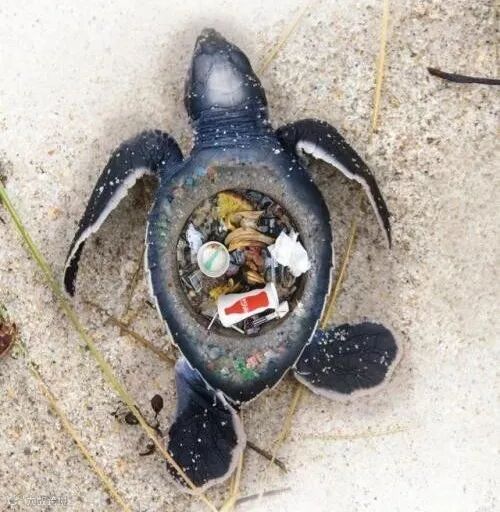 这些塑料垃圾破坏海洋生态环境,使得海洋生物的生存受到极大威胁,一些海洋生物如海龟被废弃渔网缠绕而死,一些海洋鱼类和鸟类不断误食塑料垃圾,被这些垃圾胀死,这些可怕的塑料垃圾被称为--“幽灵渔具”。