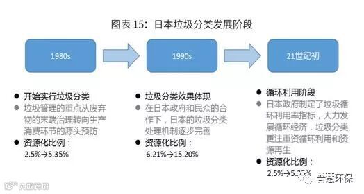 日本垃圾分类主要分为三个阶段。第一阶段为20世纪八十年代,日本开始实行垃圾分类;第二阶段为20世纪九十年代,垃圾分类效果逐渐体现出来;第三阶段为21世纪初,开始进入垃圾循环利用阶段。