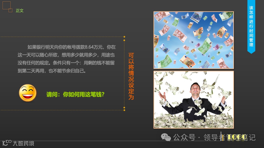 -弥补资源短板:有效管理时间可以创造出金钱、人脉等其他资源。