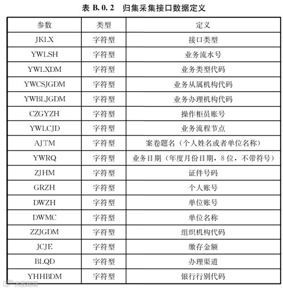 B.0.2 归集采集接口数据定义应符合表B.0.2的规定。