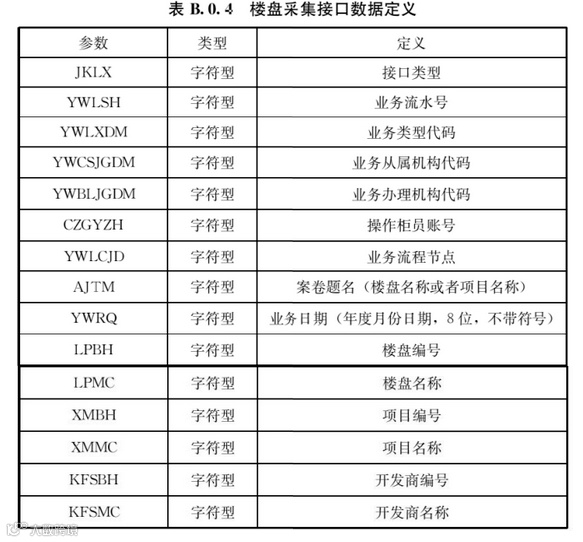B.0.4 楼盘采集接口数据定义应符合表B.0.4的规定。