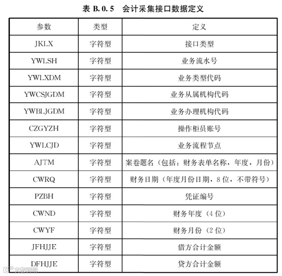 B.0.5 会计采集接口数据定义应符合表B.0.5的规定。