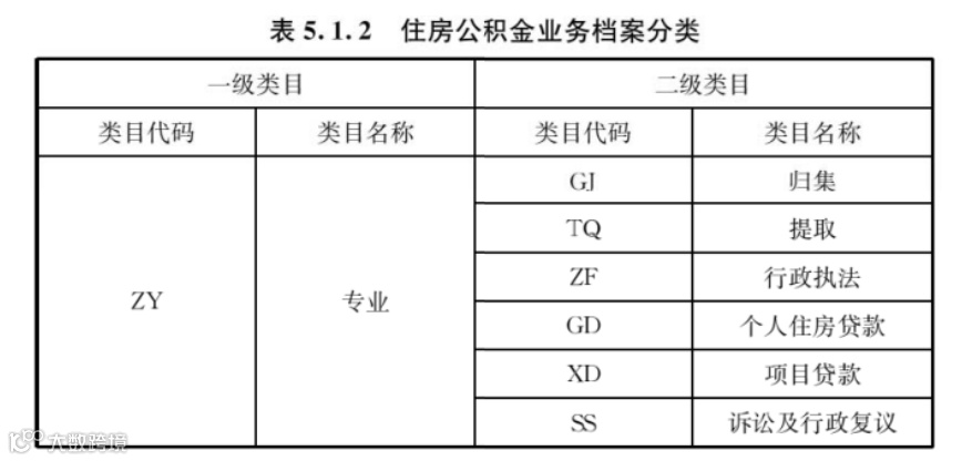 2住房公积金管理中心业务档案一级类目代码宜为专业(ZY),二级类目代码宜按照归集(GJ)、提取(TQ)、行政执法(ZF)、个人住房贷款(GD)、项目贷款(XD)、诉讼和行政复议(SS)设置。