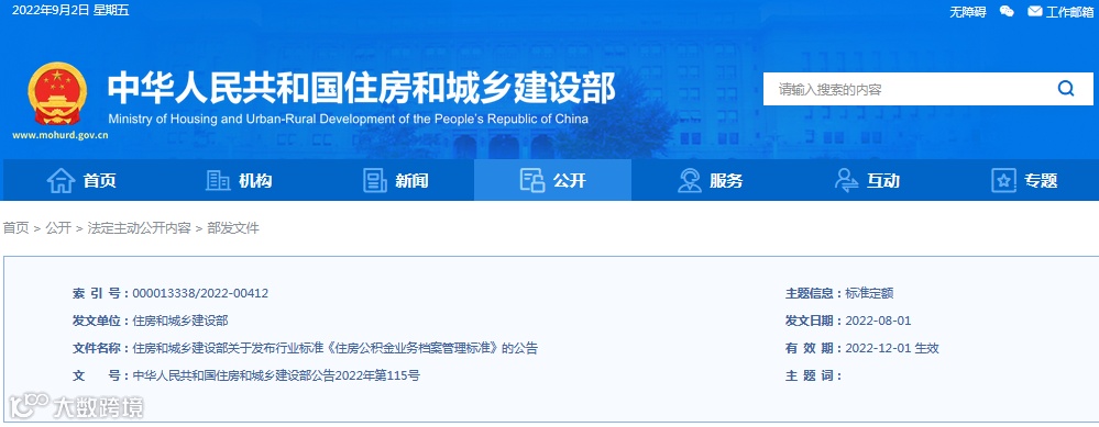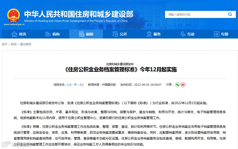 本次文章分享:《住房公积金业务档案管理标准》相关规范标准。