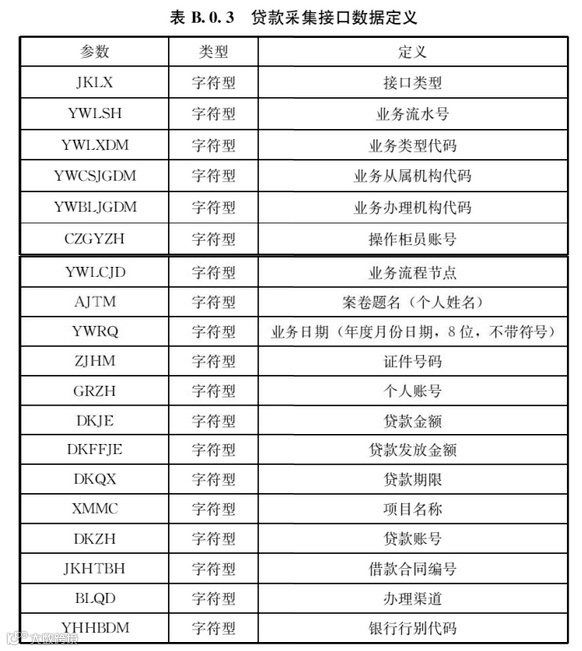 B.0.3 贷款采集接口数据定义应符合表B.0.3的规定。