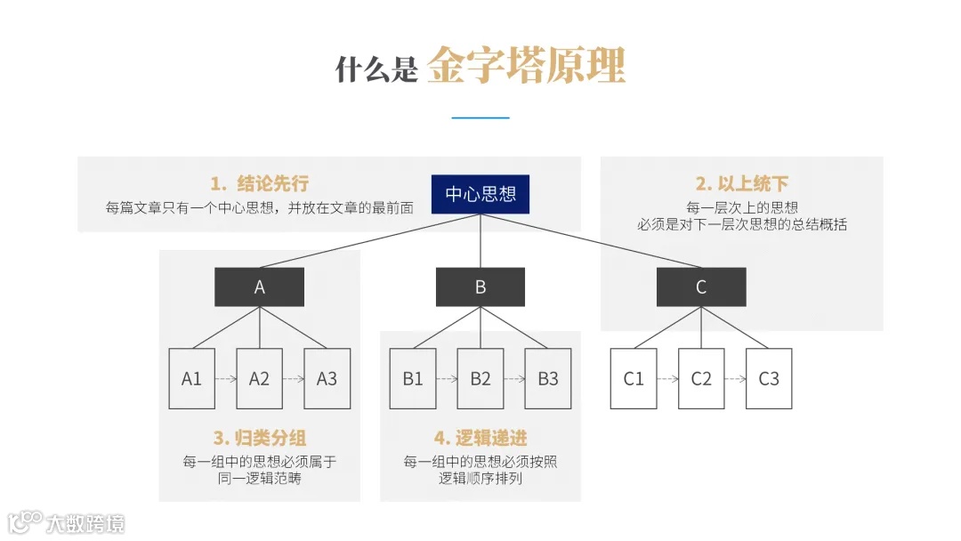 最终,文章从金字塔顶端开始自上而下完成对思想的清晰表达。