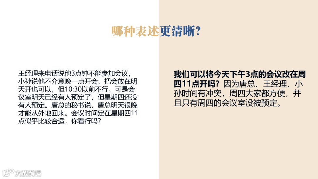 通过结论先行的结构,可以有效表达你的思想,减少受众在正确理解上花费的时间和精力。