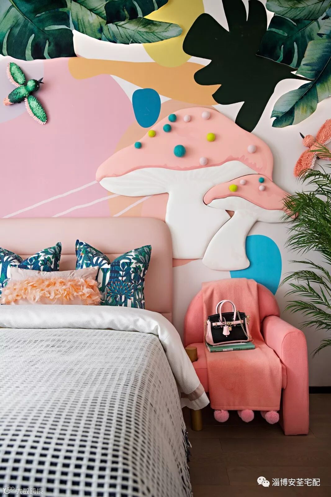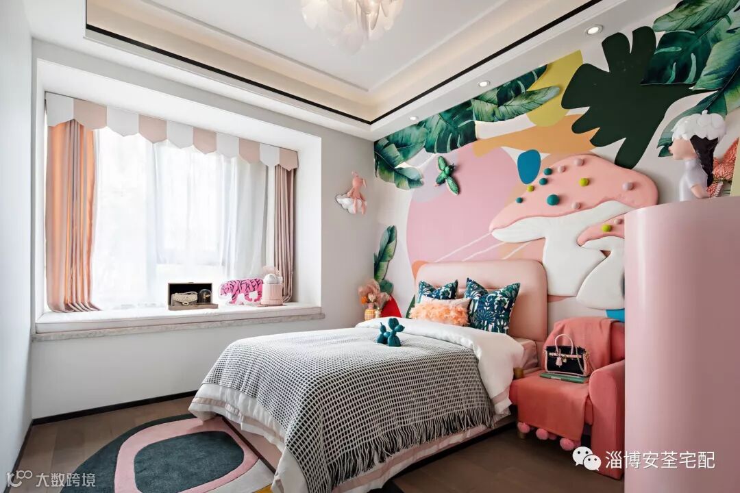 儿童房的设计和客厅相映成趣,反映了对大自然的向往。植物代表热情,蘑菇代表活力,缤纷色彩代表童年。