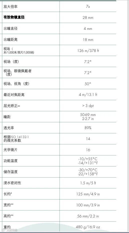 有效物镜直径 28 mm