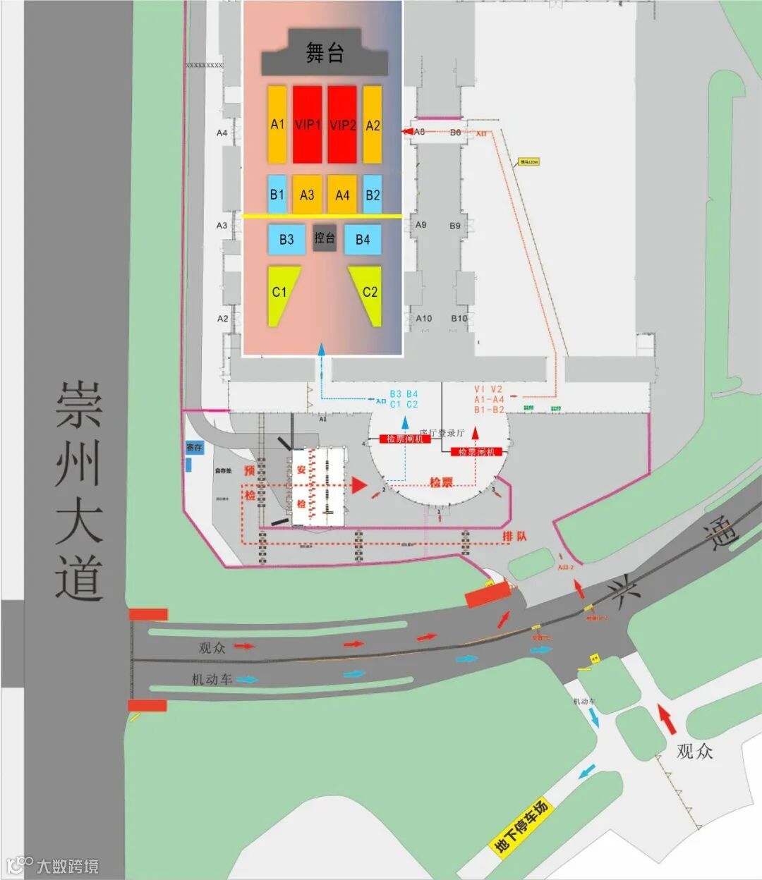 所有观看演出的观众,请参考入场流线图进行检票
