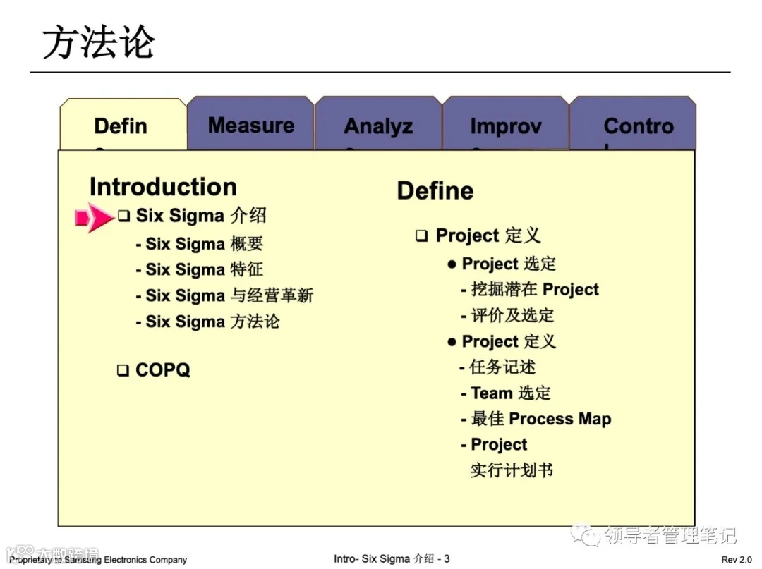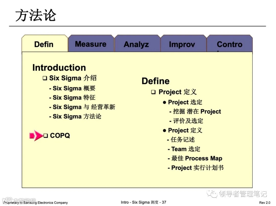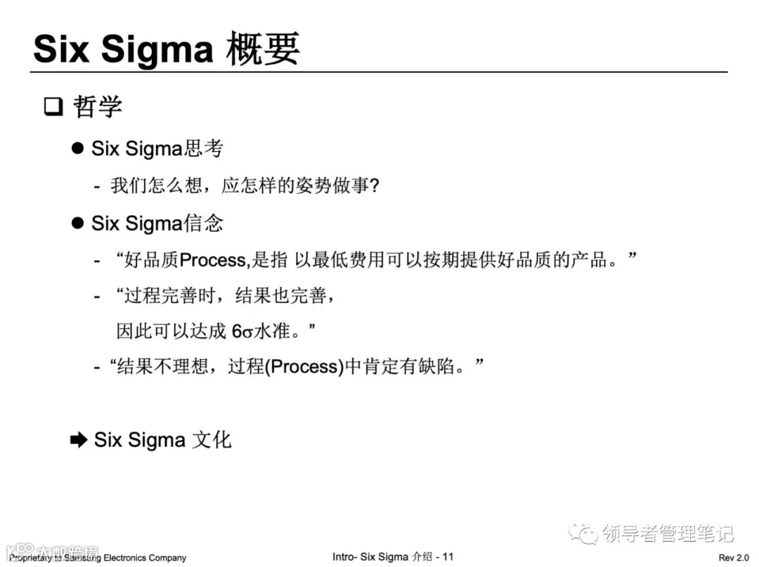 ►领导者说:★六西格玛是一种改善企业质量流程管理的技术,以“零缺陷”的完美商业追求,带动质量大幅提高、成本大幅度降低,最终实现企业财务成效的提升与企业竞争力的突破。