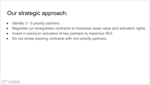 这是一个例子。假设你正在解释一个建立商业伙伴关系的策略,你的主要原则是把你的伙伴的大部分资源分配给几个关键的伙伴。这是这张幻灯片的两个版本。