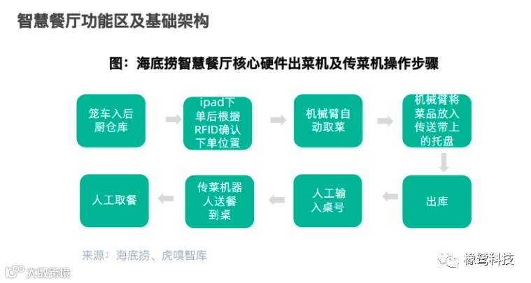 1、火锅业态智慧餐厅:轻制作、重服务,部署重点在前厅