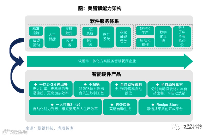 橡鹭科技是一家专注于提升餐饮供给质量的硬科技公司,其自主研发的智能炒菜机器人美膳狮能够提供机器人+菜谱程序+后厨智能管理系统的交付闭环模式,帮助餐饮商家降本增效,帮助餐饮商家快速实现规模化复制。