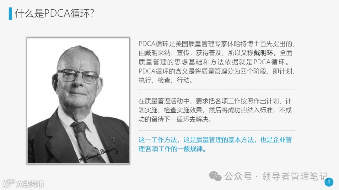 PDCA循环是美国质量管理专家沃特·阿曼德·休哈特(Walter A. Shewhart)首先提出的,由戴明采纳、宣传,获得普及,所以又称戴明环。
