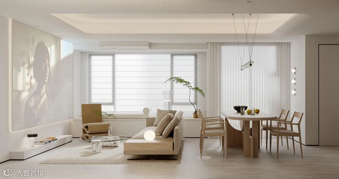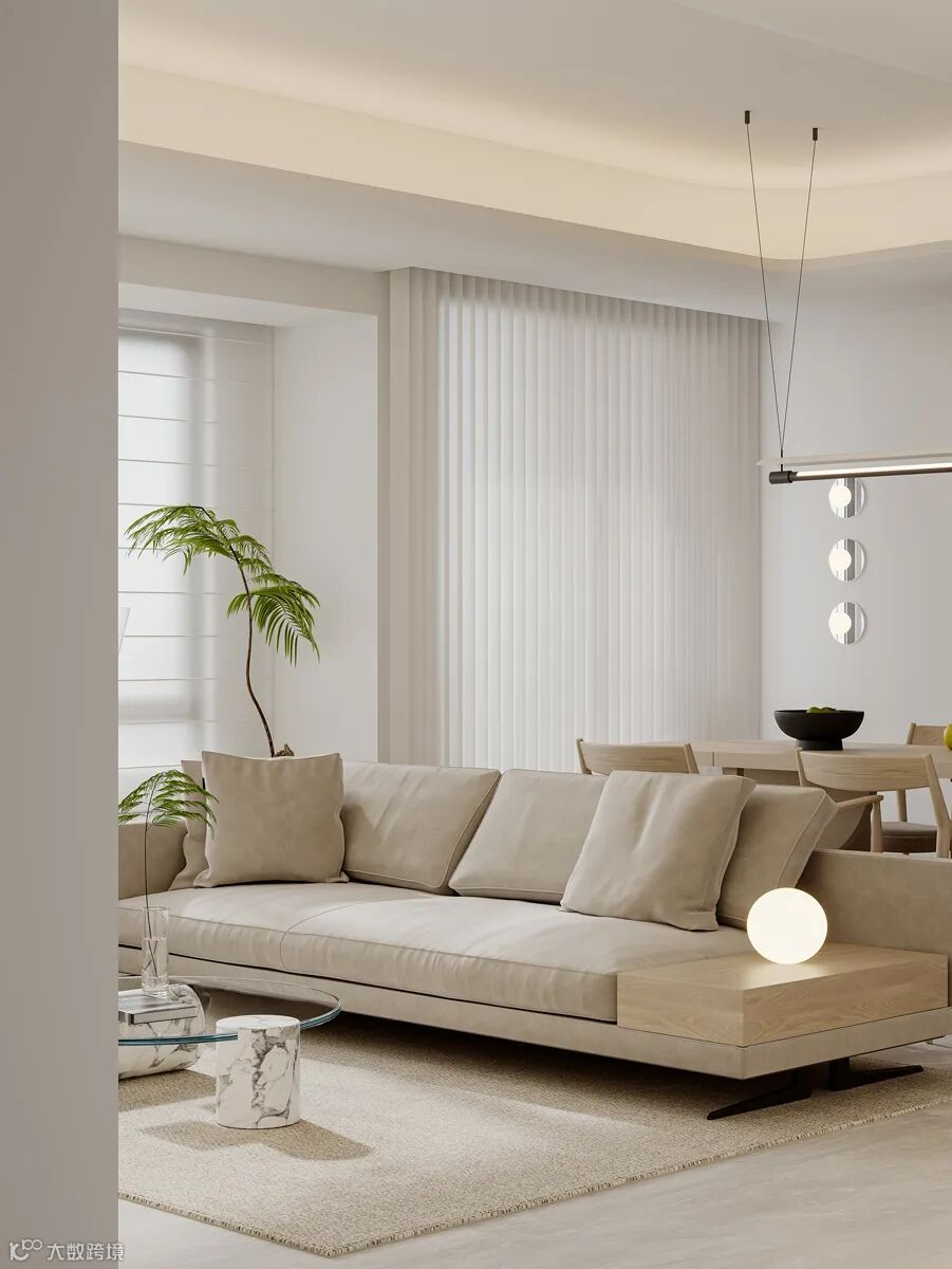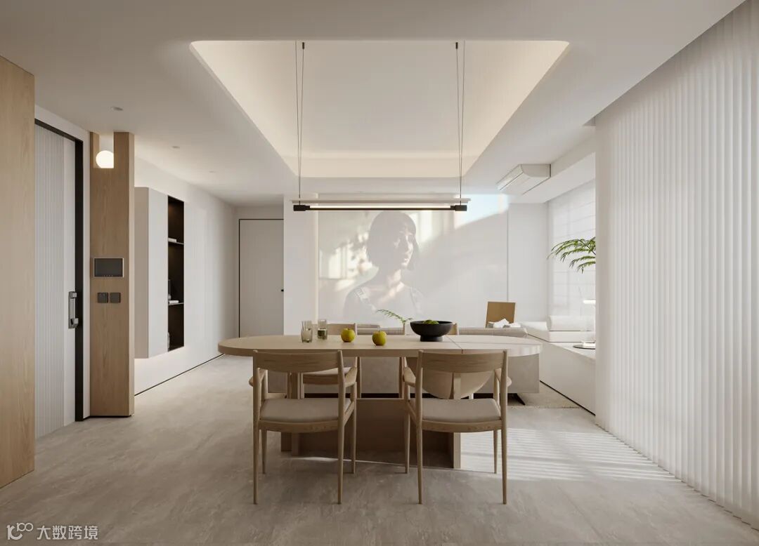 本案以极简和自然的空间语境,打造年轻人喜爱的居住空间。现代极简的空间设计结合柔和明亮的浅色调配色,将温暖和治愈的居家氛围表达得恰如其分。光线从白色梦幻帘穿透到室内,温暖质朴、舒适淡然的氛围弥漫着整个空间。