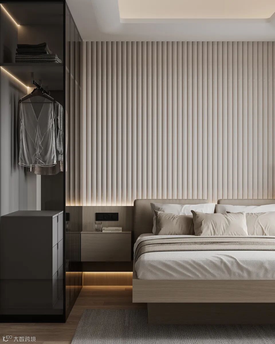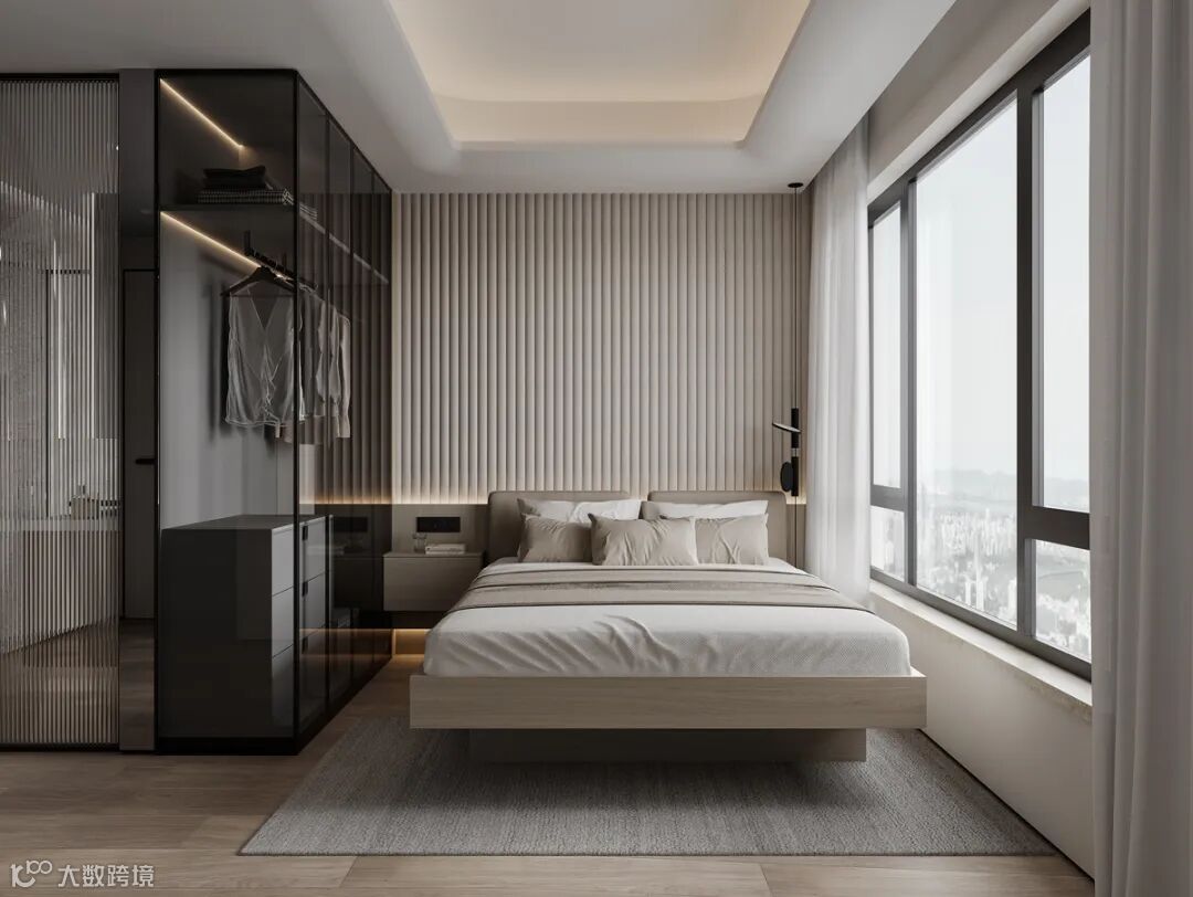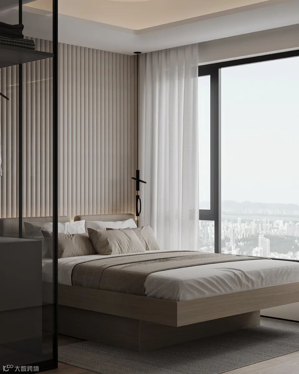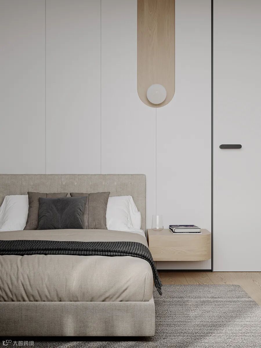 主人房呈现出返璞归真的简约之美,悬挑式的衣柜与床头柜连成一体,轻盈而整体。每个细节都经过精雕细琢,以呈现品质感的生活空间样板。静静品味“慢生活”的惬意。