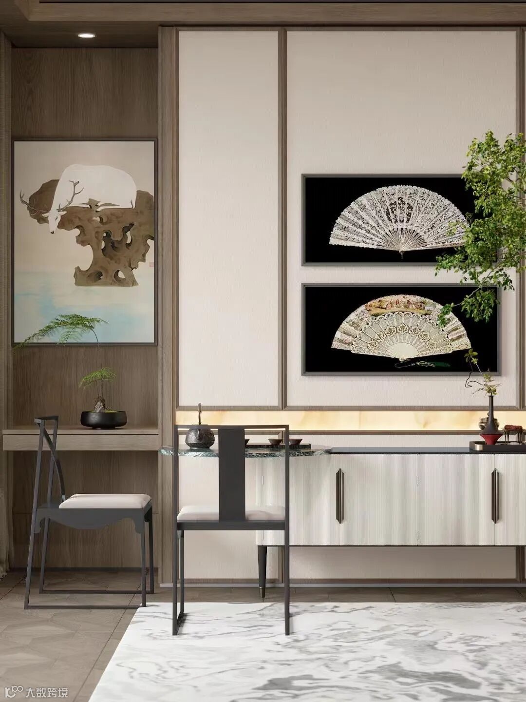 禅意山水,雾隐山岚;片山有致,寸石生情;围坐博古,新炉阅今,每寸空间展出了悠然天地。春季新草,夏日繁花,秋之云霞,冬月落雪。看景色流转变换,观人生珍贵日常。
